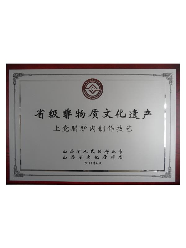 《本草綱目》第五十卷記載有:“驢肉味甘、無毒、解心煩、止風(fēng)狂、能安心氣、補(bǔ)血益氣、治遠(yuǎn)年勞損”的作用,尤其對(duì)失眠、健忘、眩暈、營(yíng)養(yǎng)不良、貧血癥有獨(dú)特療效。上黨臘驢肉是山西長(zhǎng)治市的漢族傳統(tǒng)名吃,其肉質(zhì)肥而不膩、瘦而不柴、香味四溢、回味無窮。早在明代,臘驢肉就已馳名于上黨和晉南地區(qū),產(chǎn)品遠(yuǎn)銷北京、天津、南京等南北名城。臘驢肉與當(dāng)?shù)氐臎龇?、酥火燒被稱為潞安府(長(zhǎng)治古稱潞安府)三寶。